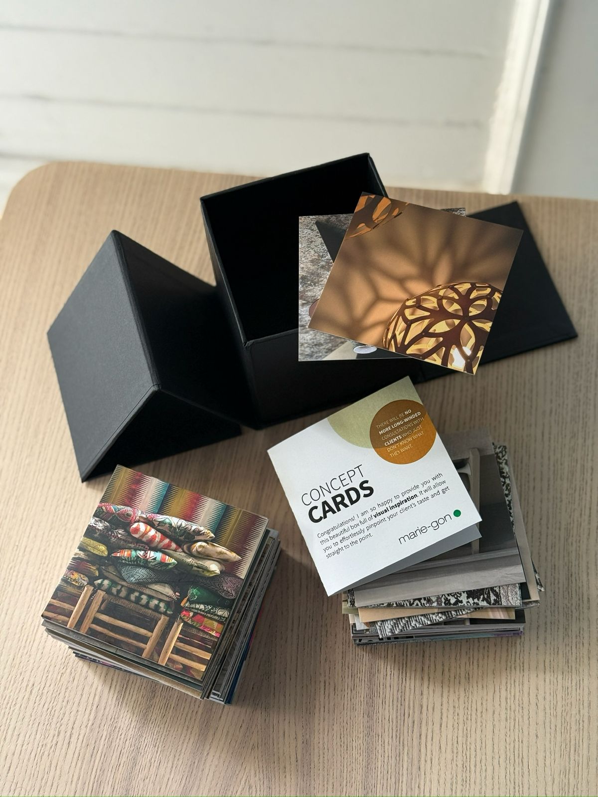 And after 850+ boxes and 2,5 years of selling my Concept Cards to interior designers all over Europe, I decided to take the leap, and make this proven tool available to struggling interior designers in the U.S.